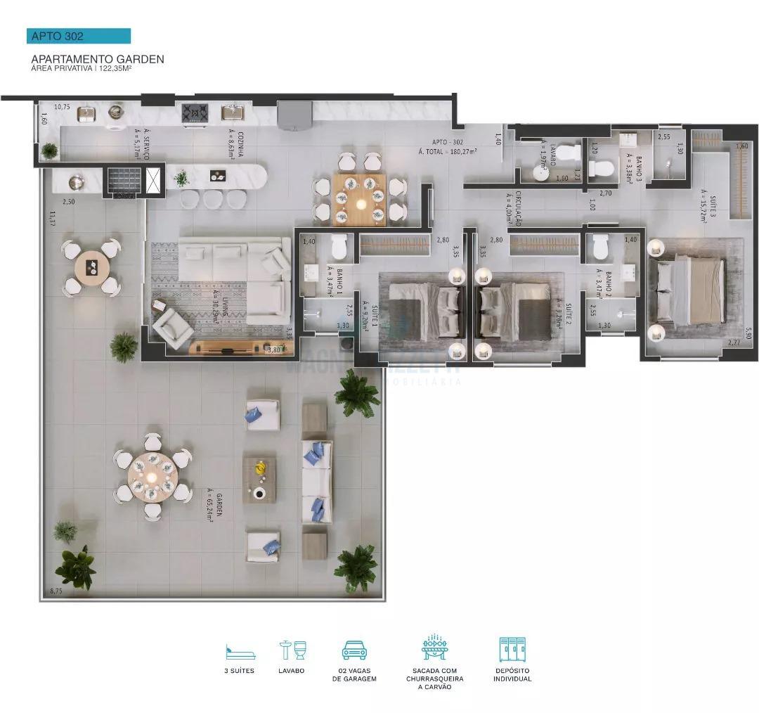 Imagine viver em um lugar onde o luxo e a funcionalidade se encontram em perfeita harmonia. Este lançamento no charmoso bairro Centro, em Balneário Rincão, SC, oferece tudo o que você sempre sonhou. Ao entrar neste empreendimento, você é recebido por um sofisticado hall com controle de acesso por reconhecimento facial e QR Code, garantindo toda a segurança e modernidade desejadas. Os apartamentos possuem amplos 125m² privativos, com três suítes confortáveis para acomodar sua família com total tranquilidade. As áreas internas são revestidas com porcelanato 90x90 e contam com forro de gesso com bordas negativas, proporcionando um acabamento impecável.