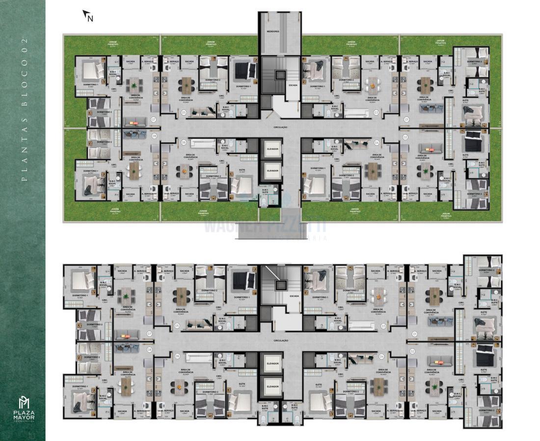 - Apartamentos de 2 dormitórios (1 suíte)