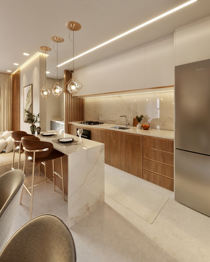 Todos os apartamentos contam com piso vinílico laminado nos dormitórios, sacada com churrasqueira, fechadura digital, espera para aquecedor a gás e ducha higiênica, além de rebaixo em gesso em todos os ambientes, garantindo conforto e sofisticação em cada detalhe.
