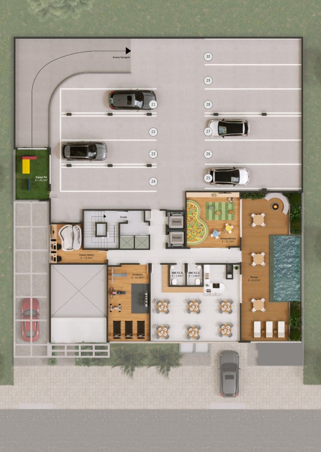 🚻 Banheiros acessíveis masculino e feminino, além de um hall de entrada elegante e áreas comuns cuidadosamente projetadas.